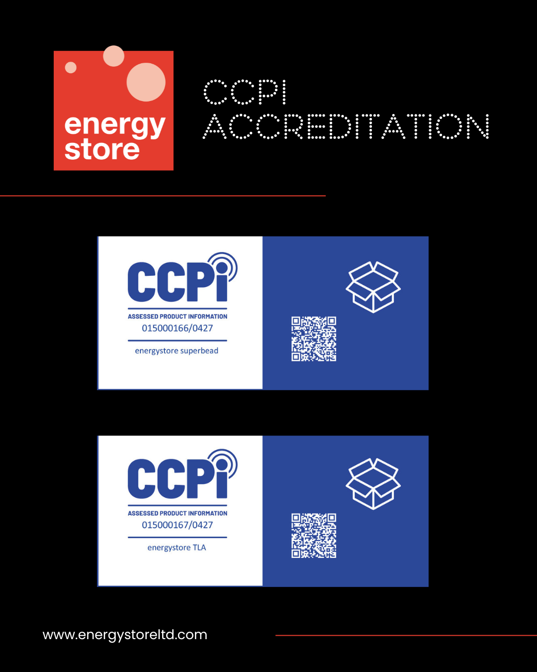 Established in the wake of the Grenfell tragedy, the CCPI operates as an independent body and undertakes a rigorous assessment of product information and marketing practices across eleven clauses. Its assessment covers the accuracy of product claims as well as the culture, leadership and processes within organisations. Achieving CCPI Assessed status for our Superbead and TLA product sets reinforces energystore’s long-standing commitment to higher standards.